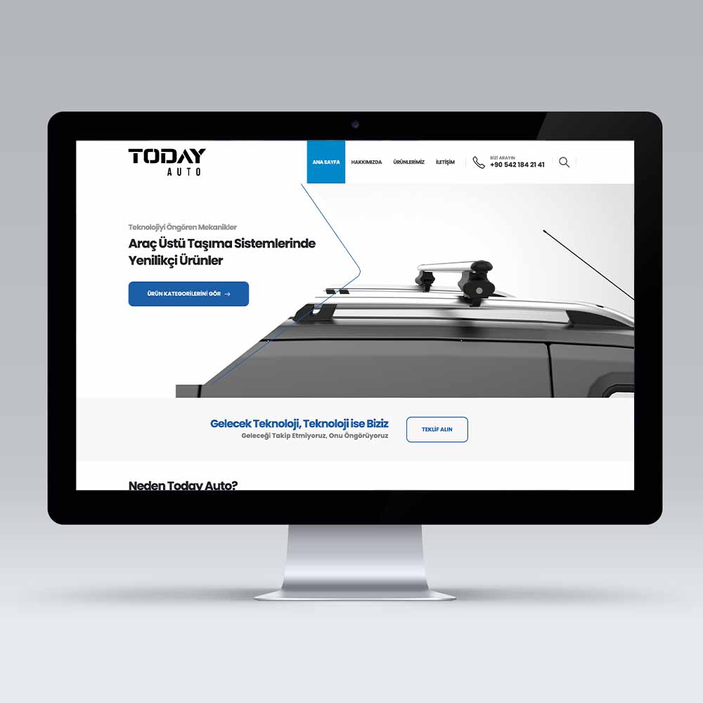Araç üstü taşıma sistemlerinde yenilikçi ürünler sunan Today Auto’nun kurumsal tanıtım firmasına ait WordPress tabanlı websitesini memnuniyetle yaparak teslim ettik.